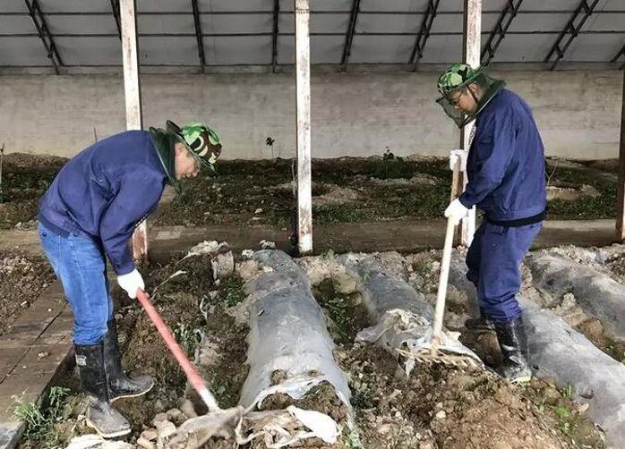 所以夏天進大棚,就要準備好沖鋒衣、防蚊面具和手套?!凹词惯@樣,一趟回來被叮一二十個包也是很正常的?!睏顔④娬f,“夏季大棚里的溫度很高,反正場站里都是男同事,實在受不了了,就干脆光著膀子干,叮就叮吧。”
