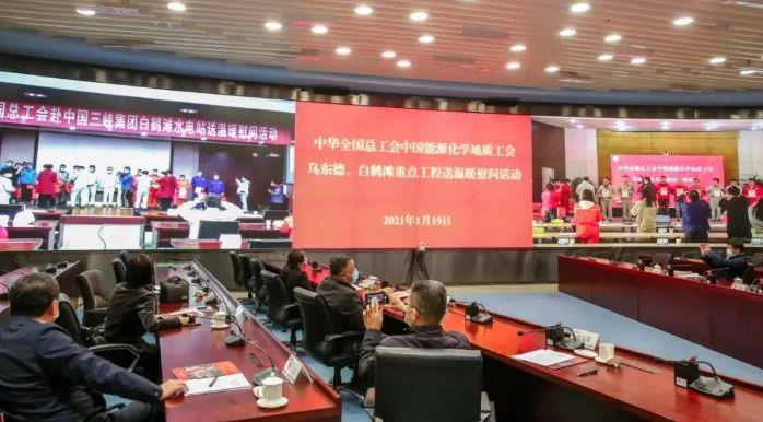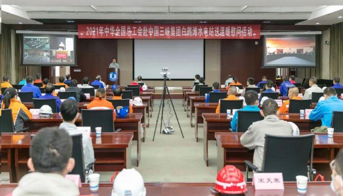 三峽集團工會、中國電建集團工會、中國能建集團工會、烏東德、白鶴灘工程各參建單位相關負責人及勞動模范、優(yōu)秀建設者、困難職工代表共計100余人參加送溫暖活動。