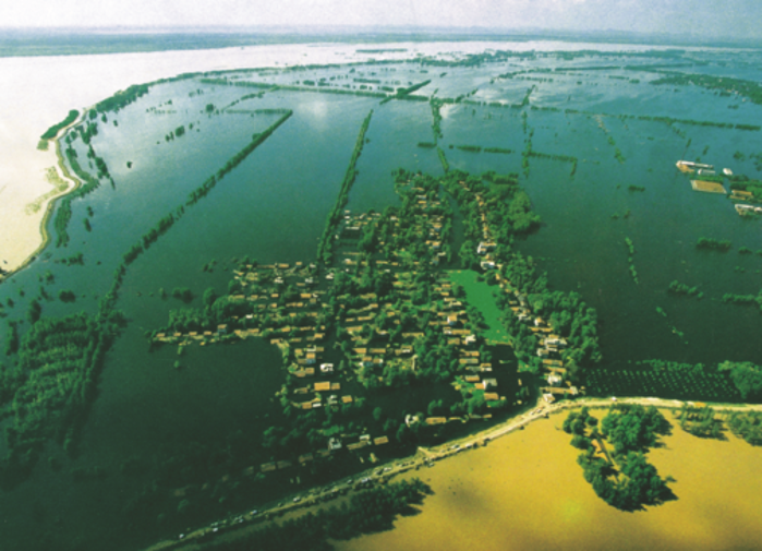 1998年長江發(fā)生洪災時被水淹沒的嘉魚縣鄉(xiāng)村簰洲灣