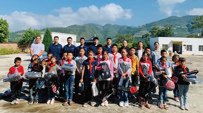金陽索瑪花開,巨大的風(fēng)電機(jī)組屹立于山頭,將原本貧瘠的荒山變成了助力鄉(xiāng)村振興的“金山銀山”?!按箫L(fēng)車”每年可“吹出”約4。19億千瓦時的清潔能源,每年可為當(dāng)?shù)卣黾?000多萬元的稅收,建設(shè)期創(chuàng)造出500多個就業(yè)崗位。六一兒童節(jié)期間,金陽風(fēng)電場的現(xiàn)場運維團(tuán)隊為偏遠(yuǎn)學(xué)校的學(xué)生們發(fā)放教學(xué)物資和生活用品,青年志愿者們向小朋友們介紹風(fēng)電機(jī)組模型,小朋友們被“大風(fēng)車”吹出的清潔能源深深吸引,“小腦袋們”圍著志愿者老師嘰嘰喳喳好奇地詢問風(fēng)力發(fā)電的種種細(xì)節(jié)。